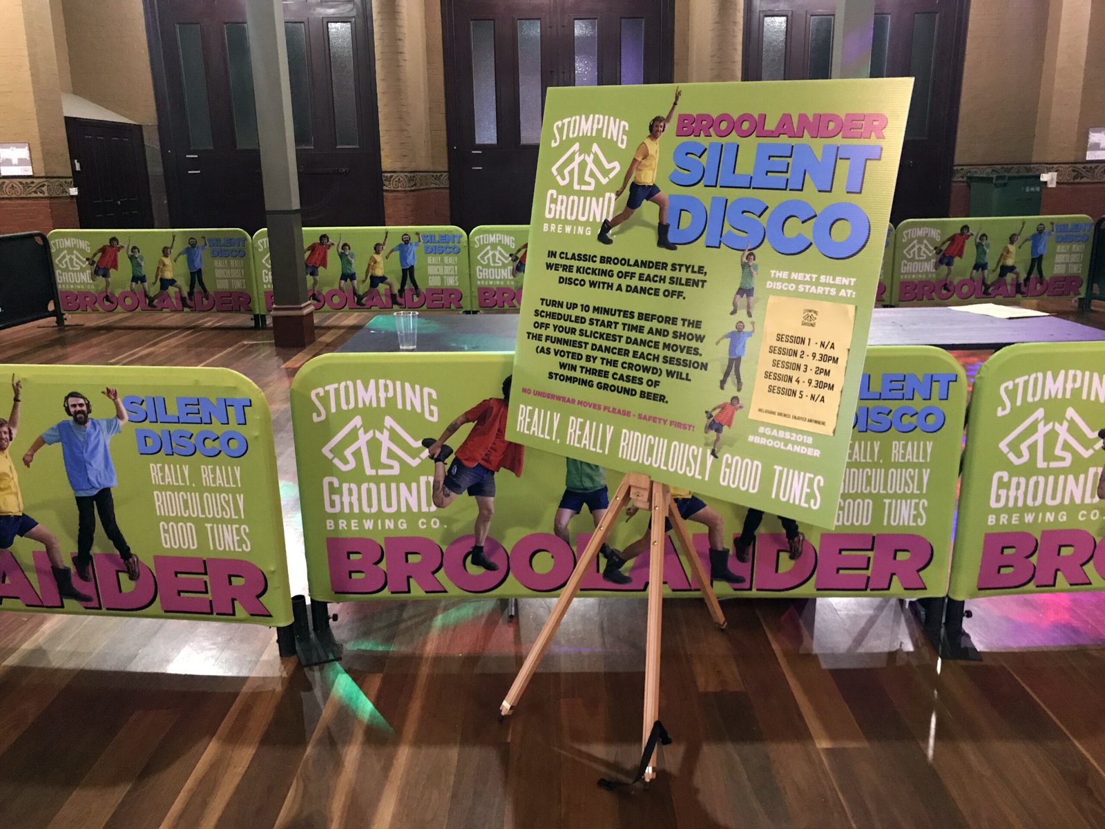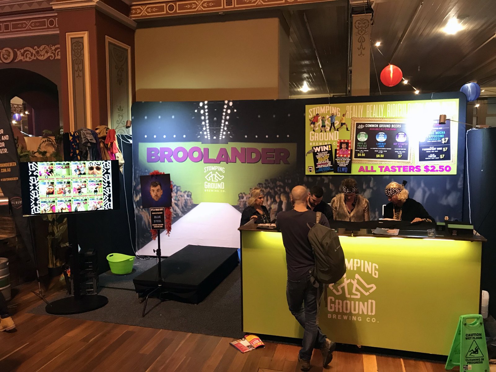 - Broolander stand – 6m wide x 3m high fabric backdrop, coreflute signage